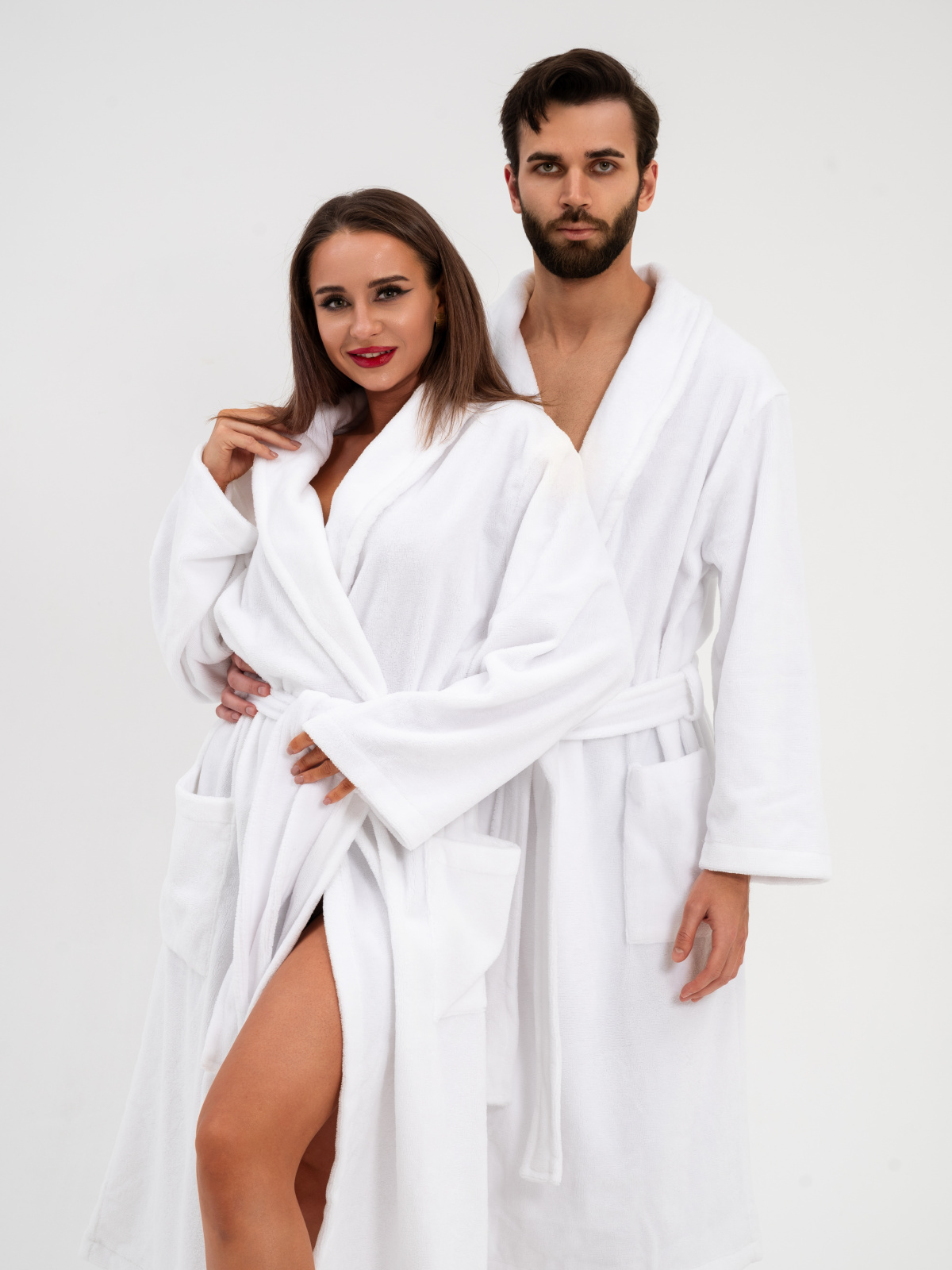 Халат гостиничный велюр-махра , воротник: шалька, два накладных кармана, удлиненный, унисекс