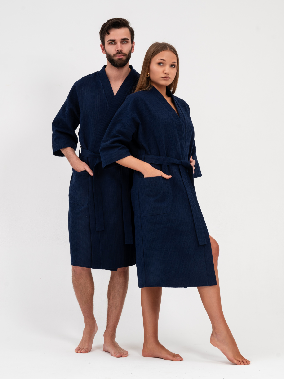 Вафельный халат кимоно унисекс темно-синий