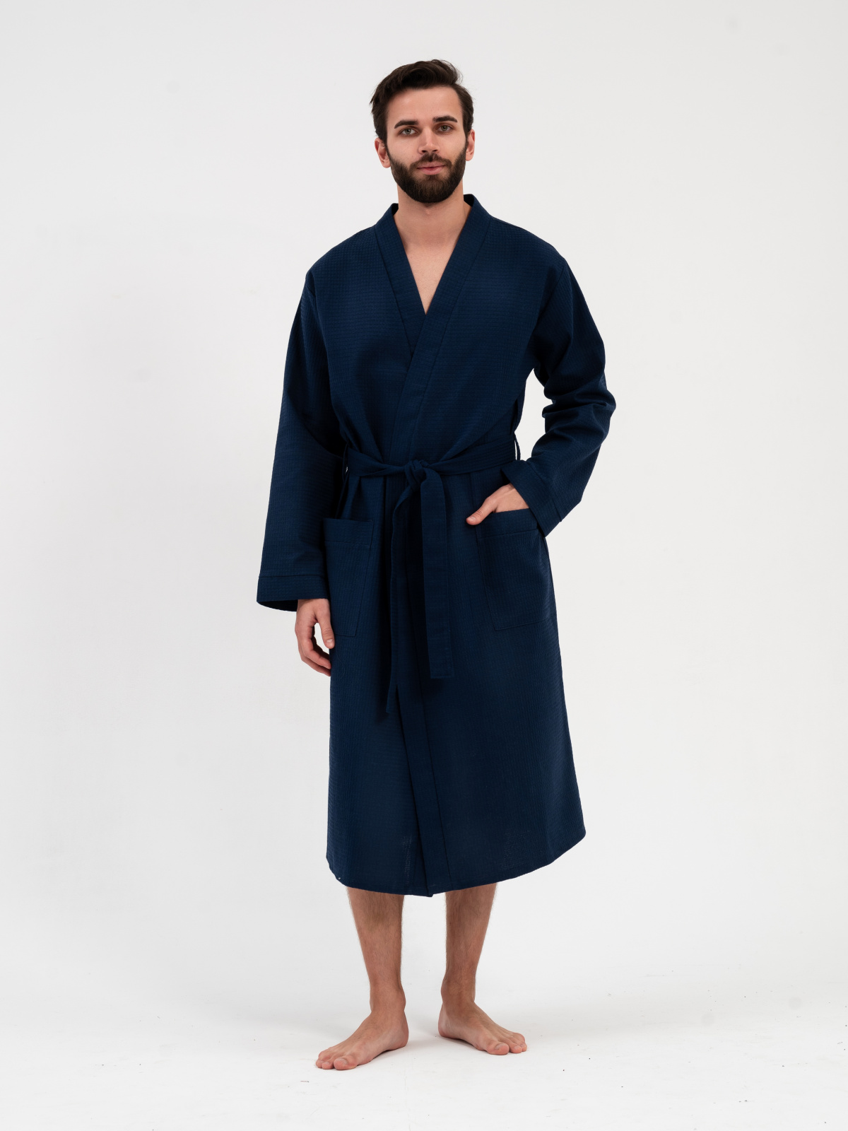 Вафельный халат унисекс темно-синий