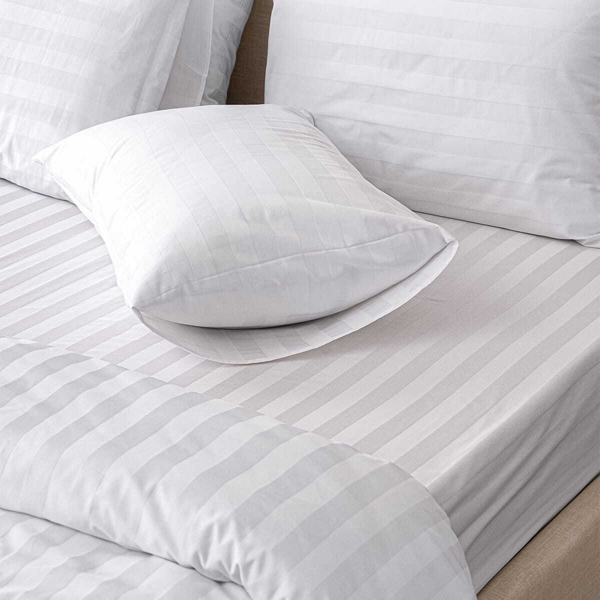 Классическая простынь без резинки от Comfotelo из страйп-сатина это 100% хлопка.Ткань плотная и невероятно мягкая, с нежным сатиновым блеском, гигиеничная и гипоаллергенная, простынь без резинки сохраняет свой первоначальный вид и цвет после стирки при температуре до 40С на деликатном режиме. Плотность нашей ткани - 140 г/м2. Ширина полос 3х3 см.